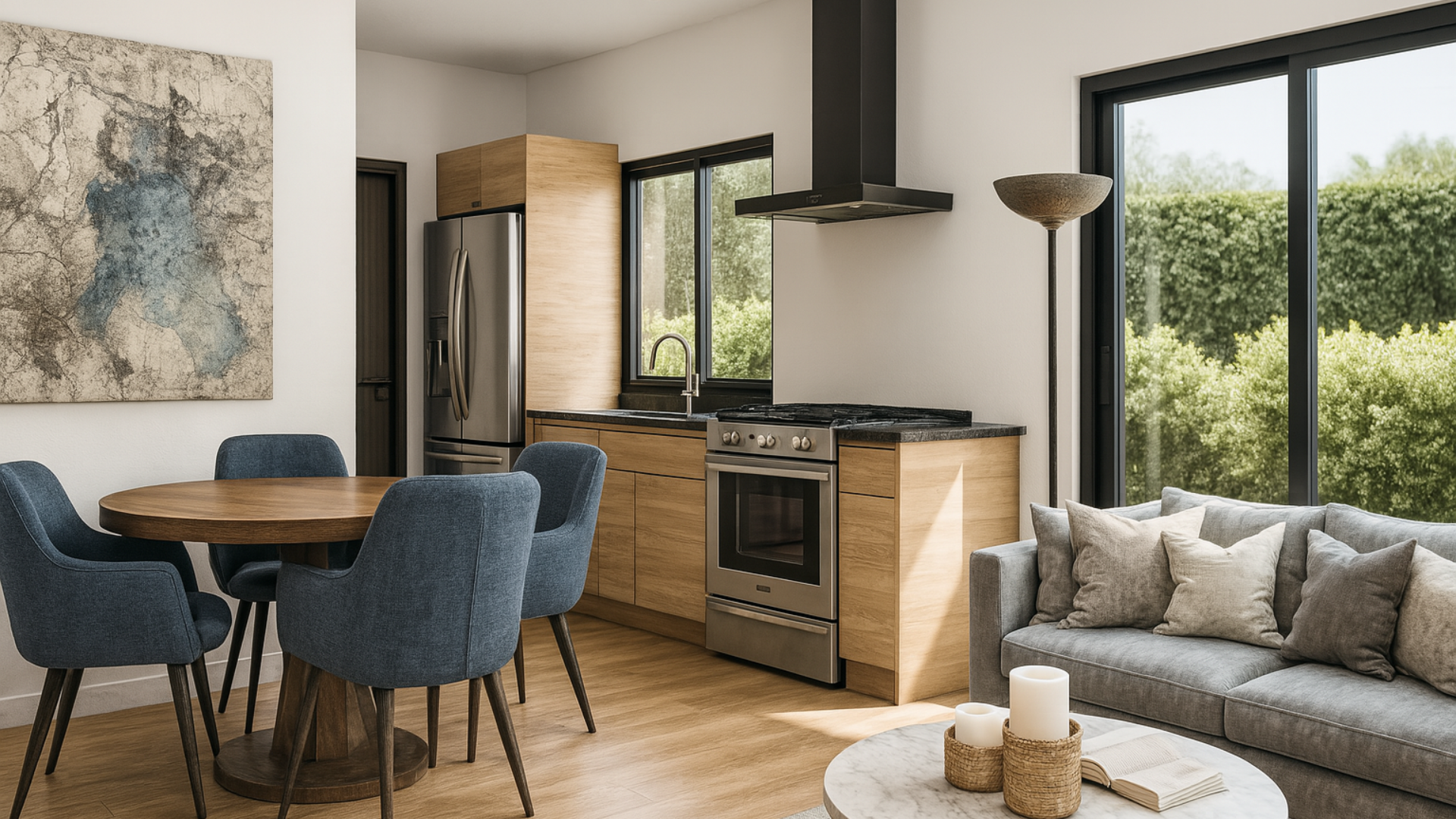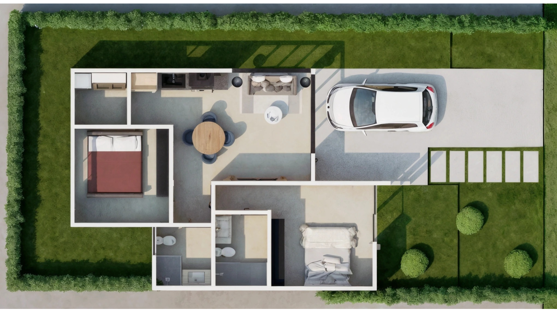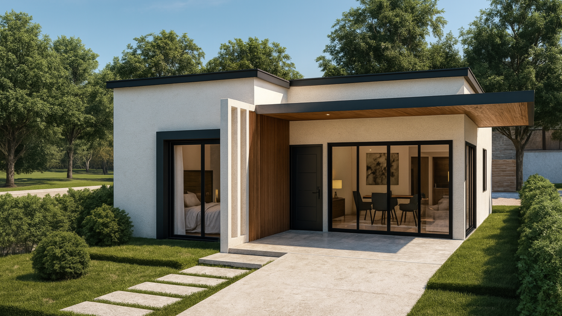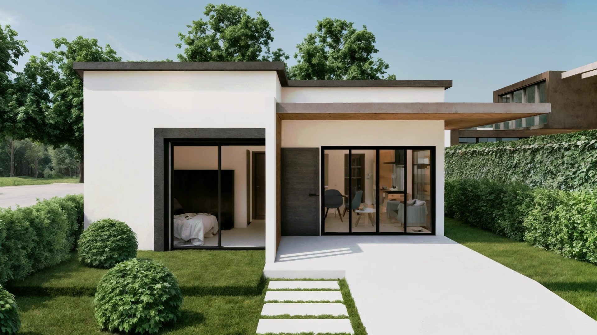 Con líneas limpias, formas contemporáneas y una distribución inteligente, este modelo de vivienda ofrece un estilo de vida moderno, práctico y lleno de encanto. Su diseño compacto integra de manera armoniosa la cocina, el comedor y la sala, generando un ambiente cálido y funcional que se abre al jardín mediante grandes ventanales que llenan de luz cada espacio. El juego de volúmenes en fachada, la textura de la madera y el contraste con el blanco aportan dinamismo y carácter, mientras que los espacios interiores, con acabados sobrios y detalles acogedores, invitan al confort diario. Este hogar está pensado para quienes valoran la belleza simple, la eficiencia en el uso del espacio y la conexión fluida entre interior y exterior. Es una propuesta ideal para vivir de manera auténtica, disfrutando cada rincón con alegría y funcionalidad.