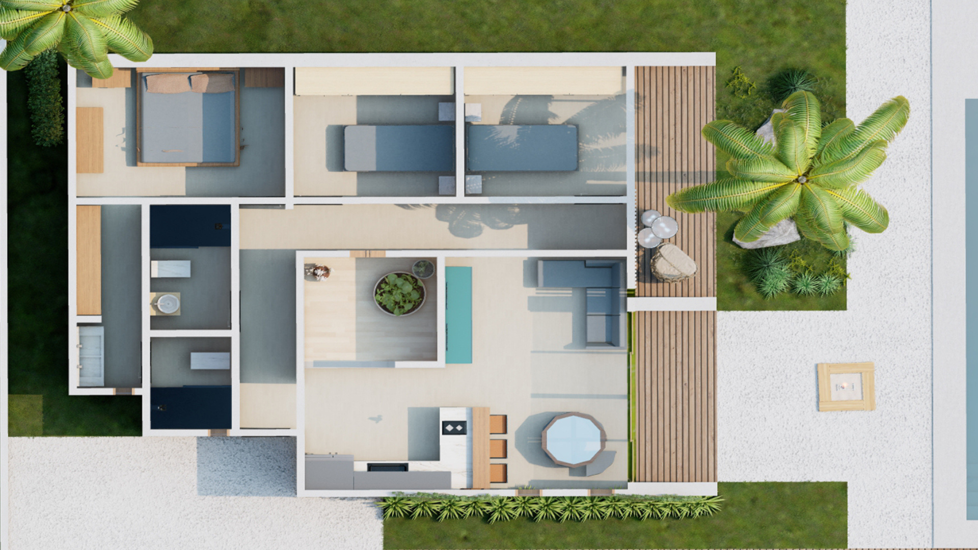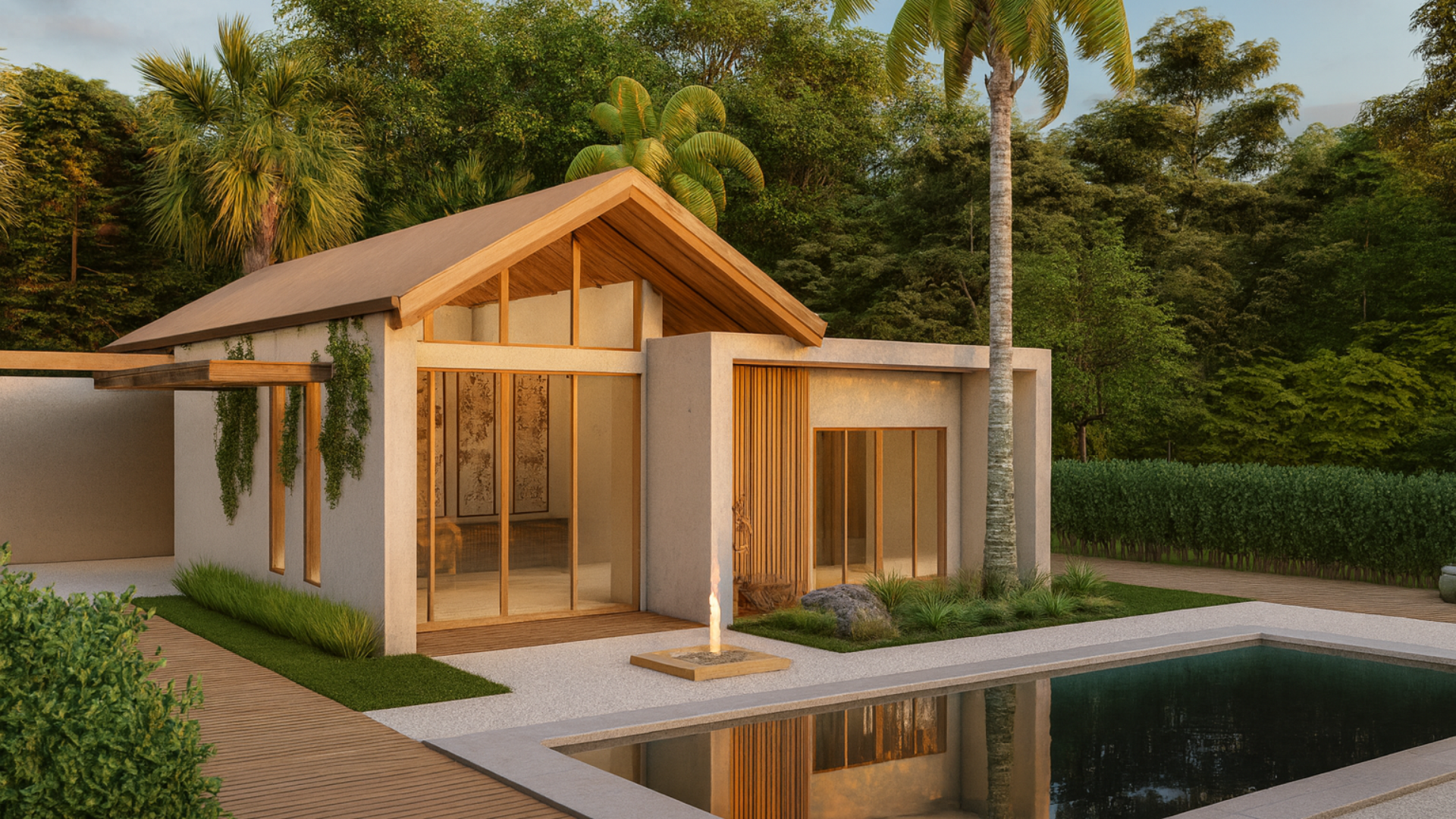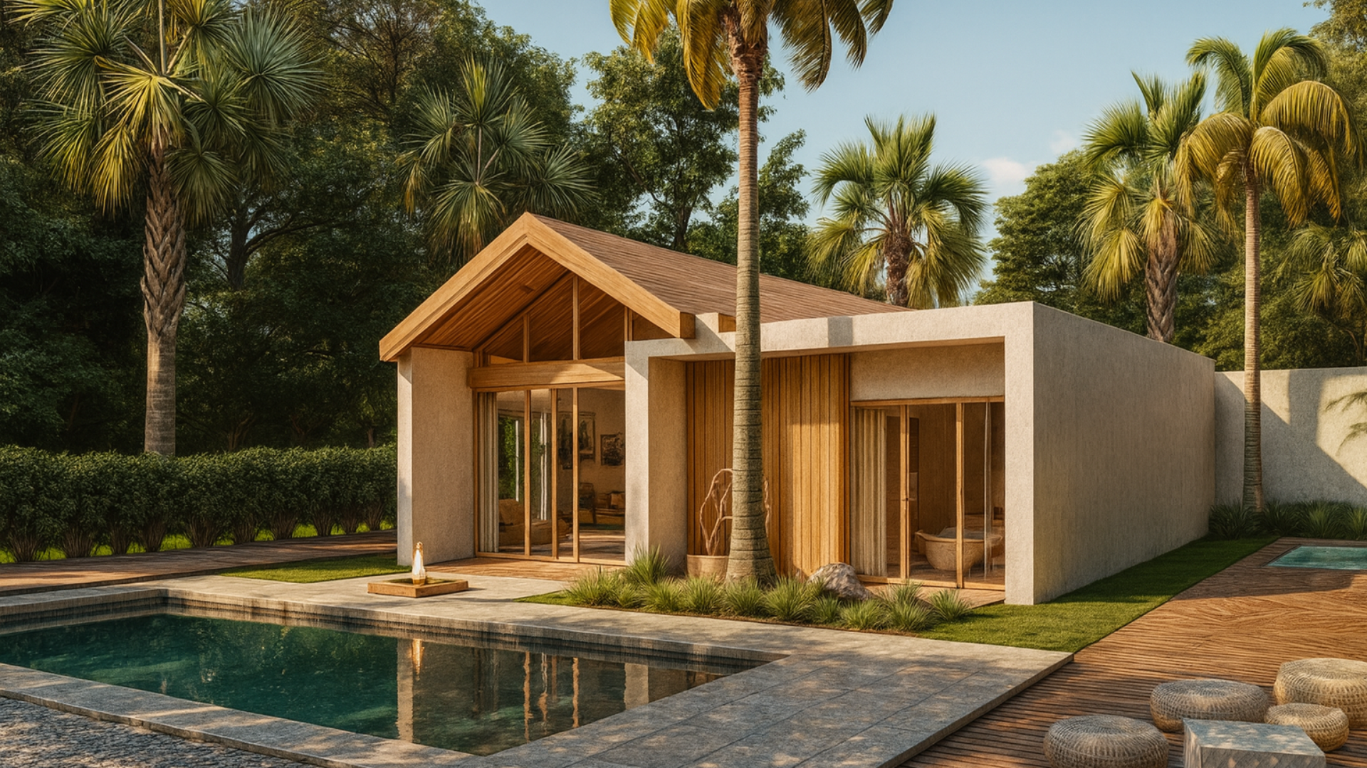 Esta casa combina un diseño moderno con un toque tropical, integrando líneas limpias, techos de madera y amplios ventanales que conectan los interiores con la naturaleza. Sus espacios abiertos y luminosos se complementan con detalles cálidos y elegantes, ideales para disfrutar en un entorno exclusivo con piscina y terrazas.